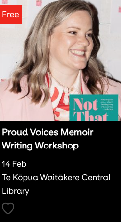 I’ll be running a two-hour workshop for Pride and Auckland Libraries, designed for anyone who’s thinking about writing a memoir. Suitable for everyone – but only 20 spots will be available.
